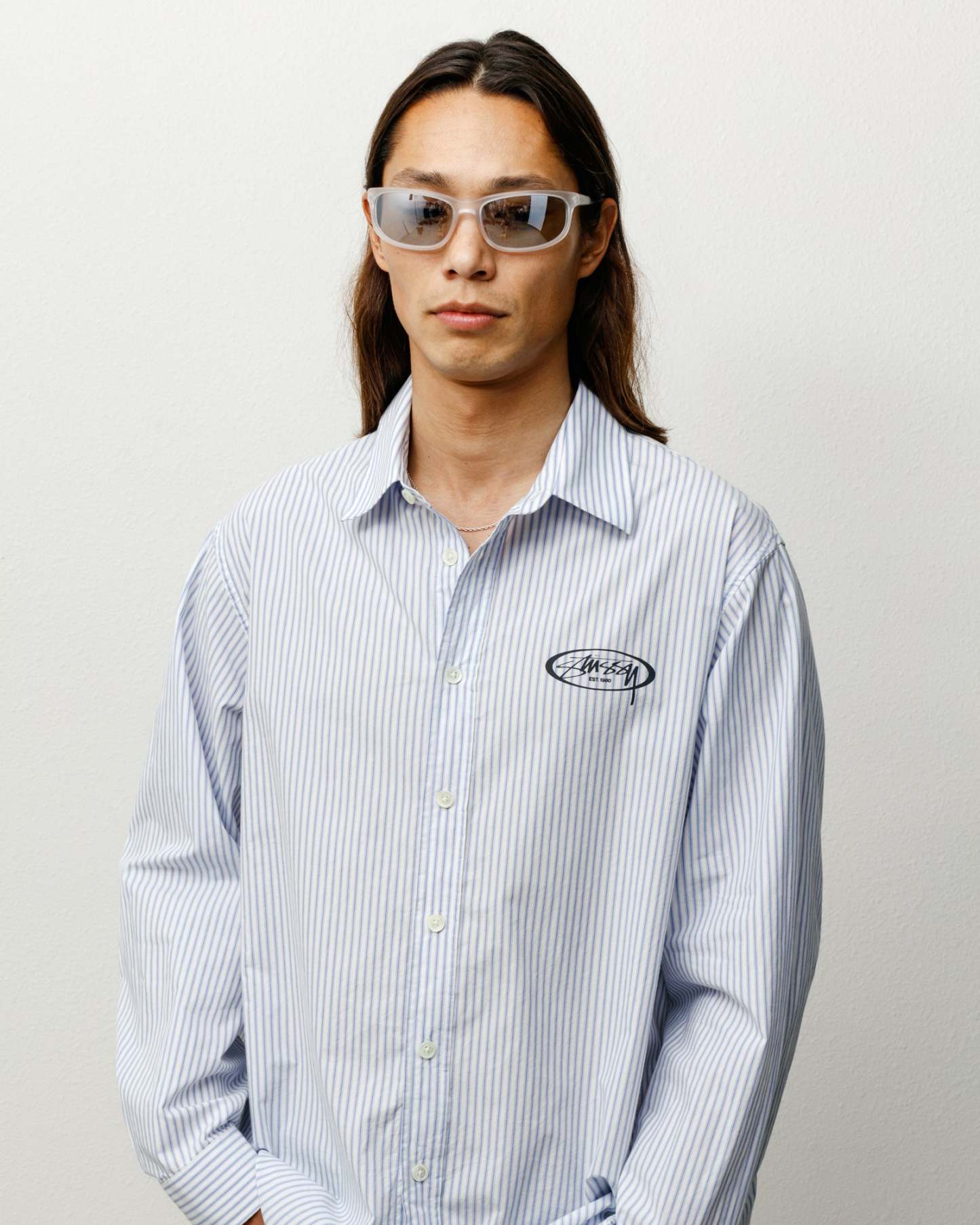 Metal inset logos at the temple ends