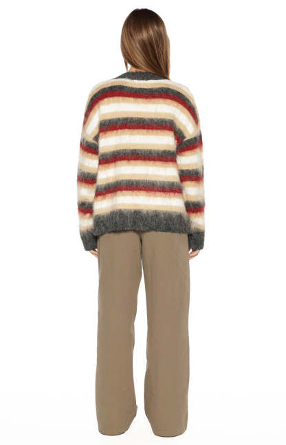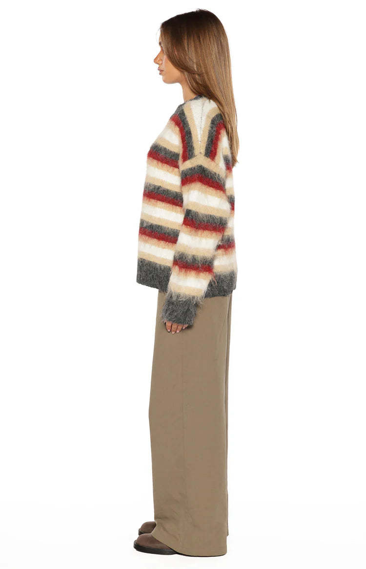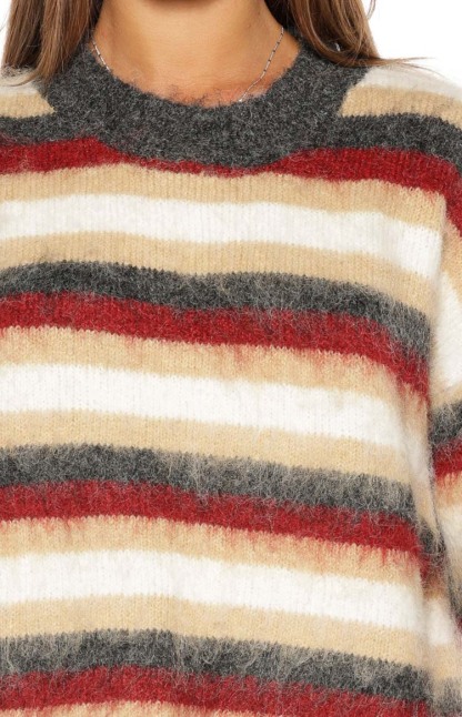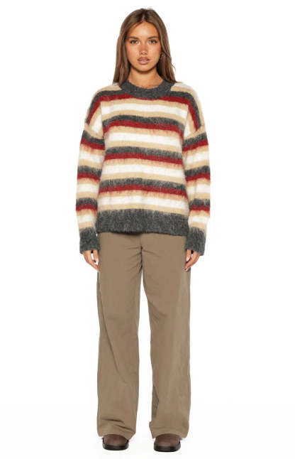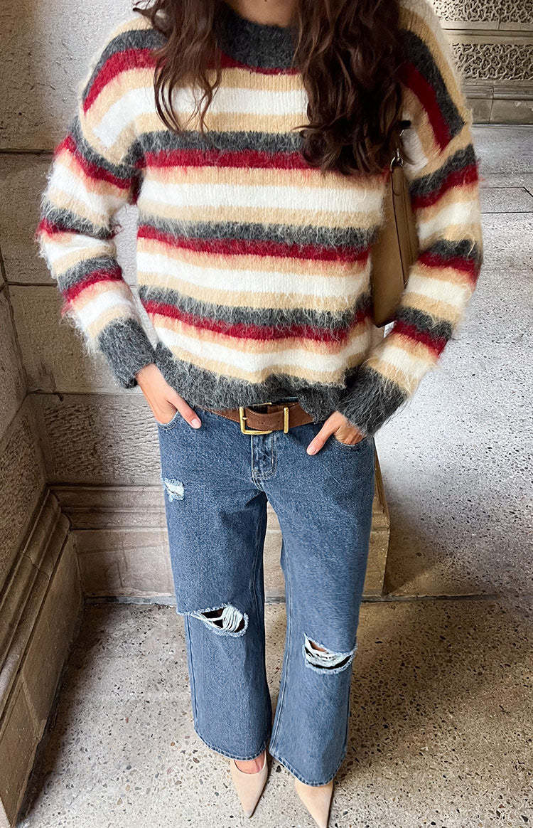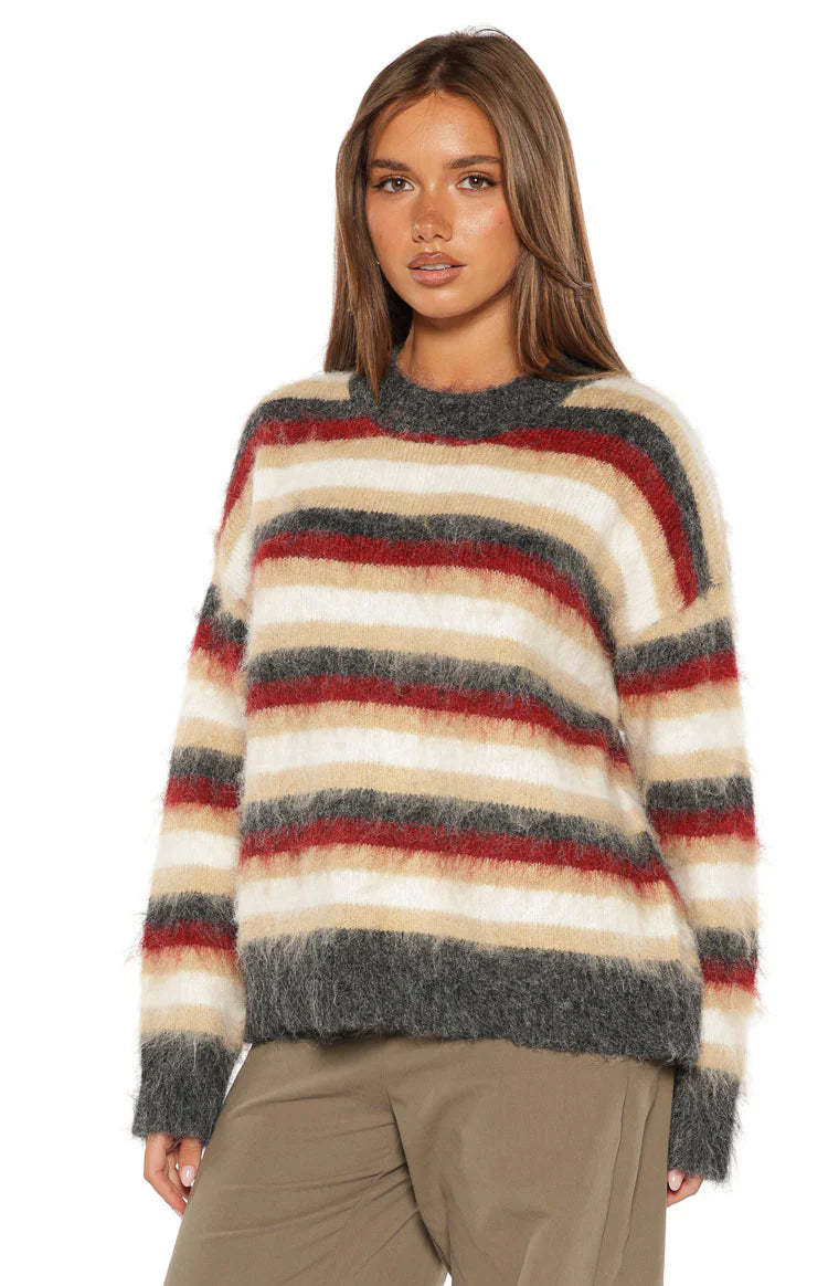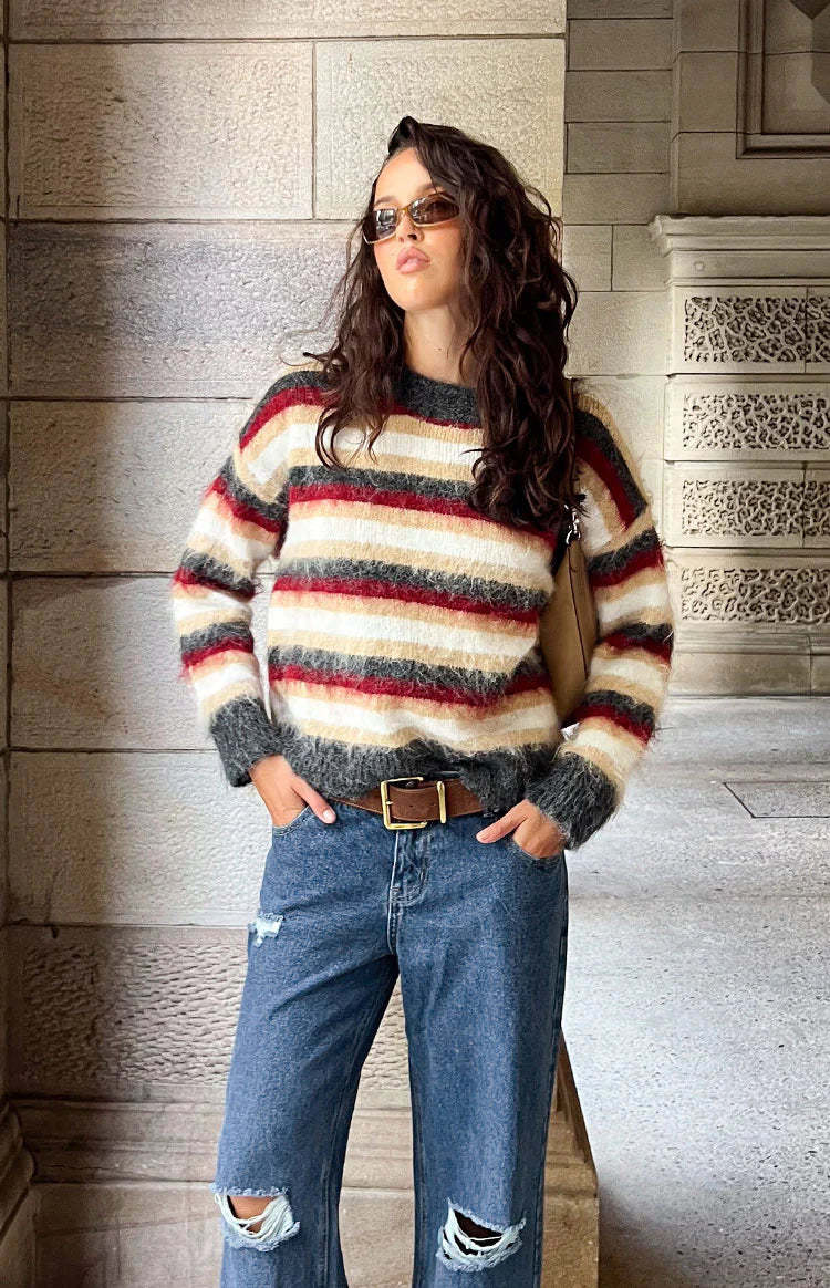 Meet the piece that’s about to become your wardrobe staple, our Sicily Multi Stripe Oversized Sweater, a must-have for chilly winter days and autumn lounging. Cut from a cozy knit material, this relaxed design features a classic crew neckline and a multi-colour striped pattern. Throw it on over your favourite denim and sneakers to capture a relaxed, put-together transeasonal aesthetic.