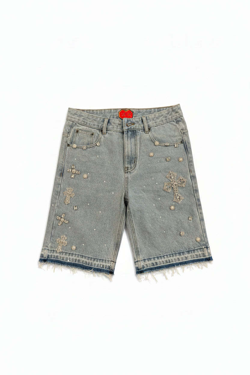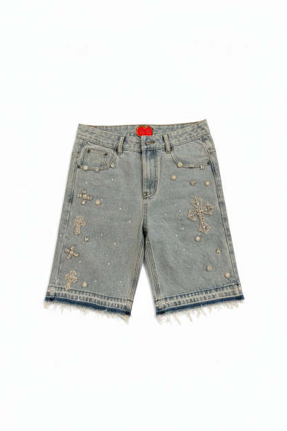 Rhinestone Cross Denim