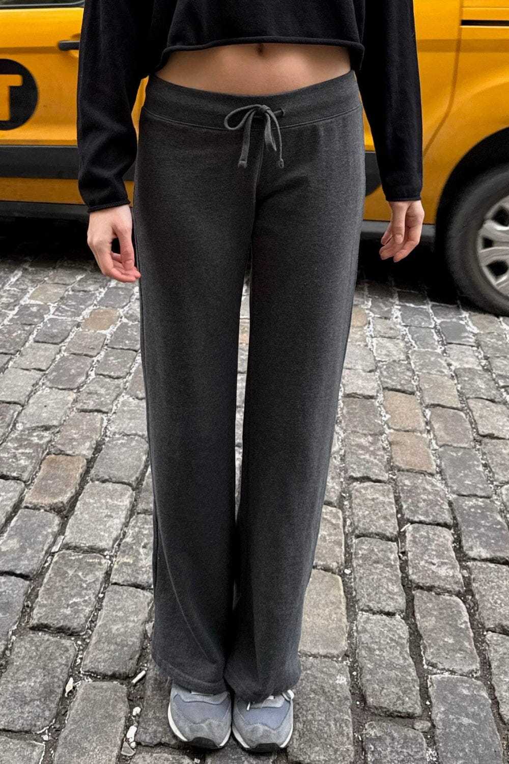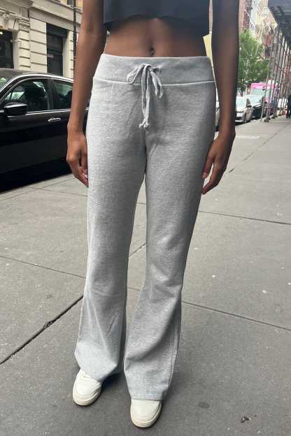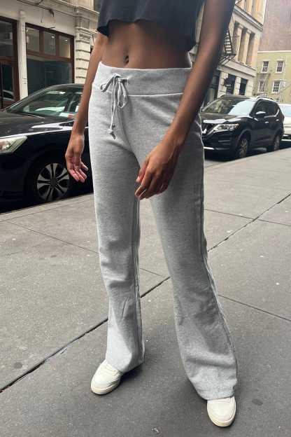 Soft cotton fleece lined tie yoga pants with a flared pant leg.