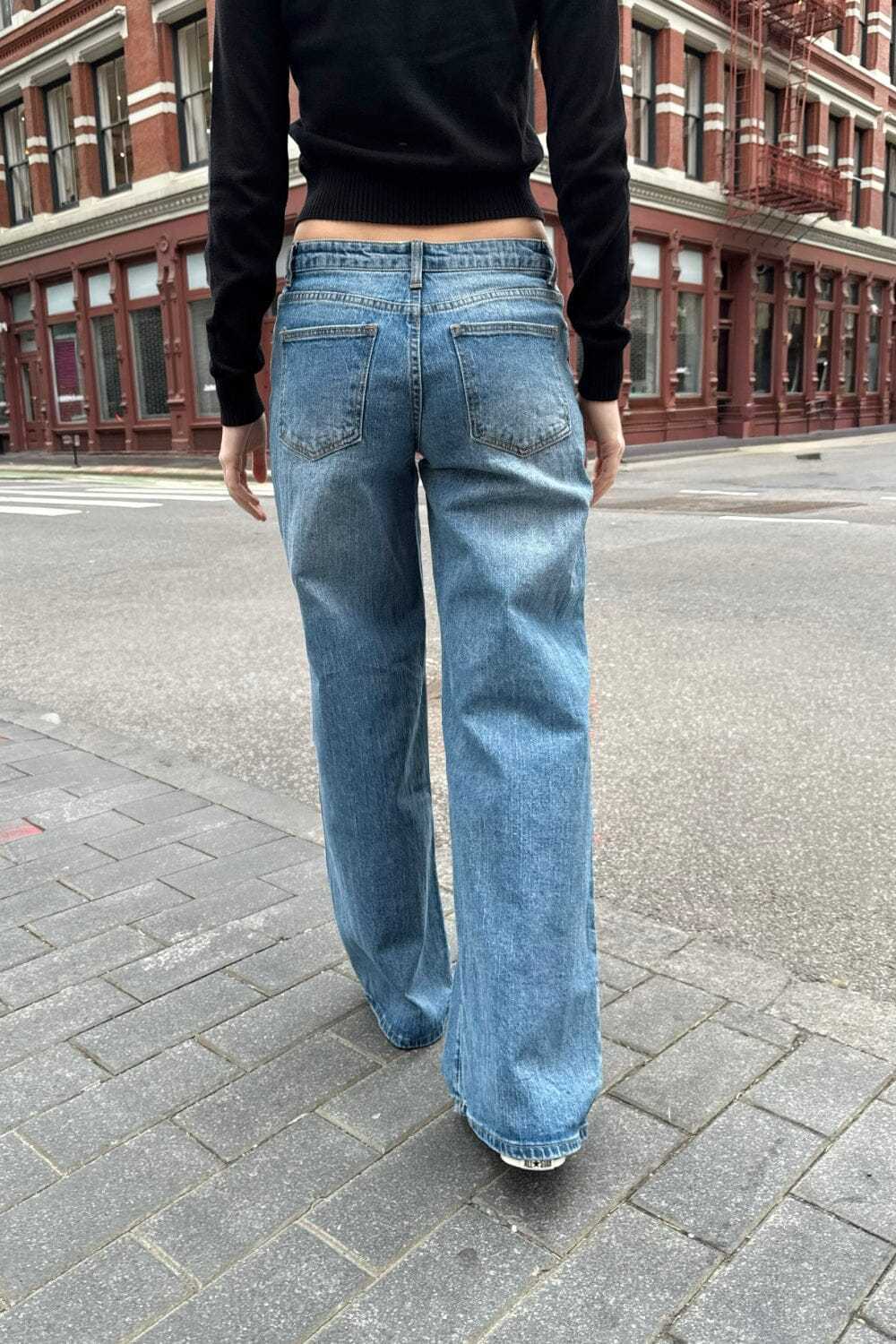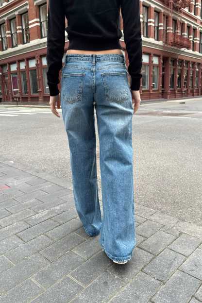 Low rise, wide leg jeans with two front pockets, two back pockets, and zipper closure.Fabrics: 69% polyester, 29% rayon, 2% elastaneMeasurements: 9" (23cm) rise, 39" (98cm) inseam, 32" (82cm) waist