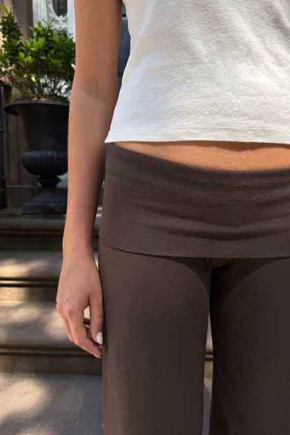 Soft cotton blend yoga pants with a foldover waistband.