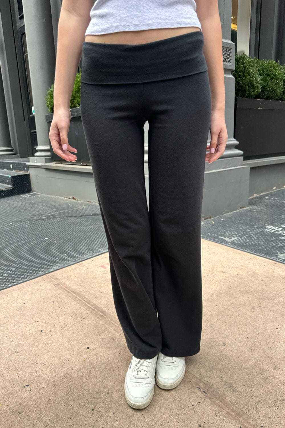 Soft cotton blend yoga pants with a wide pant leg.