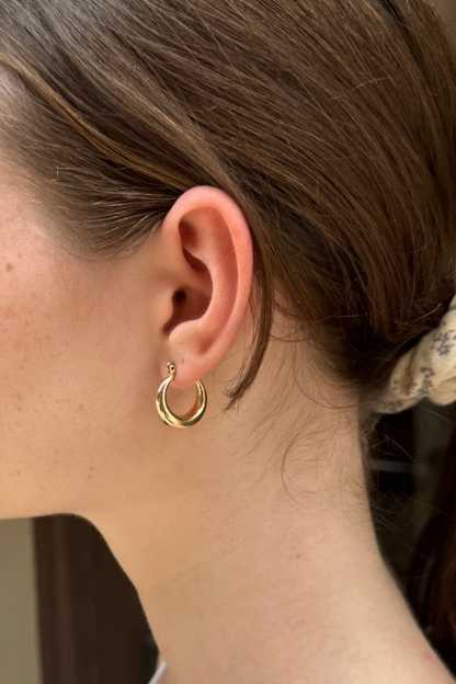 Thick hoop earrings with a saddle style backing. All accessories are final sale. Materials: Lead, nickel and cadmium compliant. Measurements: 3/4" (2 cm) lengthMade in: America