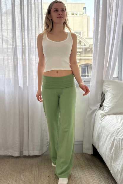 Soft, wide-leg, cotton blend yoga pants.